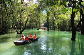 荔波縣地處貴州省南部,總面積2431.8平方公里,總人口18萬人,其中少數民族人口占92.7%,主要有布依、水、苗、瑤等少數民族。這里生態良好,氣候宜人,全縣森林覆蓋率達70.38%,負氧離子每立方厘米最高達18萬個,年平均氣溫在18℃左右。荔波擁有“中國南方喀斯特”世界自然遺產地和“世界生物圈保護區”兩張世界級品牌,是全國全域旅游示范區、國家生態旅游示范區、貴州省優先發展重點旅游區和全域旅游示范縣,被譽為“地球綠寶石”和“全球最美喀斯特”。