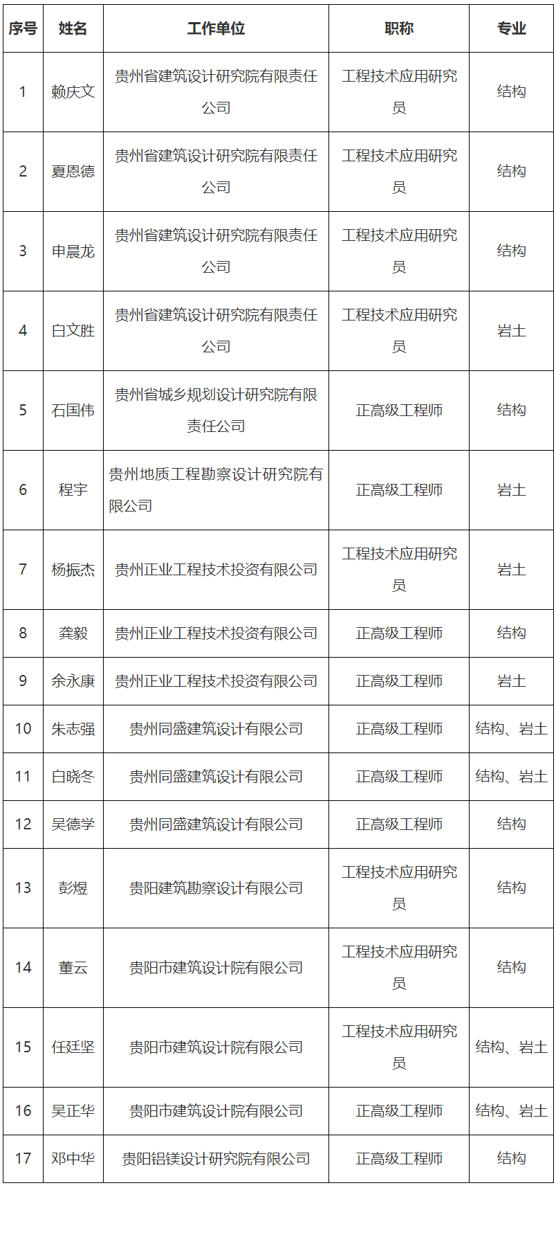 各有關單位: 根據《貴州省住房和城鄉建設廳關于開展貴州省超限高層建筑工程抗震設防專項審查專家委員會專家換屆推薦的通知》相關要求,經各相關單位推薦、組織審核等程序,確定符合入庫條件的專家共17名(詳見附件),現將名單予以公示,公示時間至2025年1月16日。 公示期內,任何單位和個人對公示名單有異議的…[詳細]