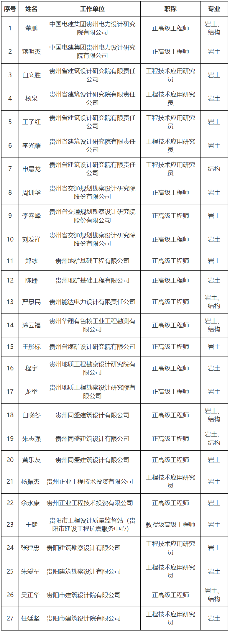 各有關單位: 根據《貴州省住房和城鄉建設廳關于開展貴州省巖土工程勘察專家委員會專家換屆推薦的通知》相關要求,經各相關單位推薦、組織審核等程序,確定符合入庫條件的專家共27名(詳見附件),現將名單予以公示,公示時間至2025年1月13日。 公示期內,任何單位和個人對公示名單有異議的,均可向我廳勘察設計…[詳細]