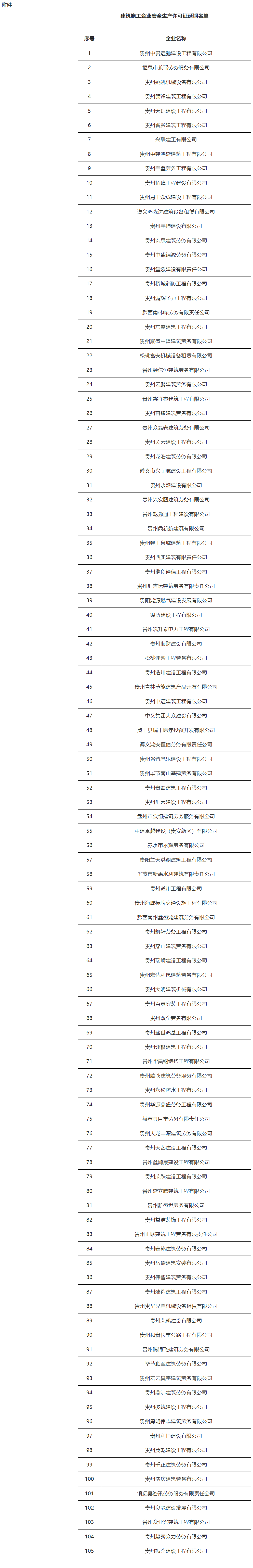 關于貴州中貴遠馳建設工程有限公司等105家安全生產許可證延期的公示 2024年延期第(39)批