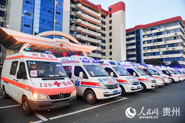 從貴陽市出發的12輛救護車經過15個小時跋涉,順利抵達鄂州市。救護車運載了一批醫用設備和藥品,同車的抵達的還有6名醫護人員。楊昌鼎 攝