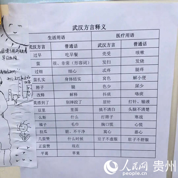 “為此,我還在網上學了很多武漢方言,現在還說得挺溜的!标愅ユ滦χf,剛開始大家不太能聽懂一些老年患者的方言,她上網查了很多并制作成一張“武漢方言釋義表”發在群里供小伙伴們參考,確保與患者溝通無障礙。
