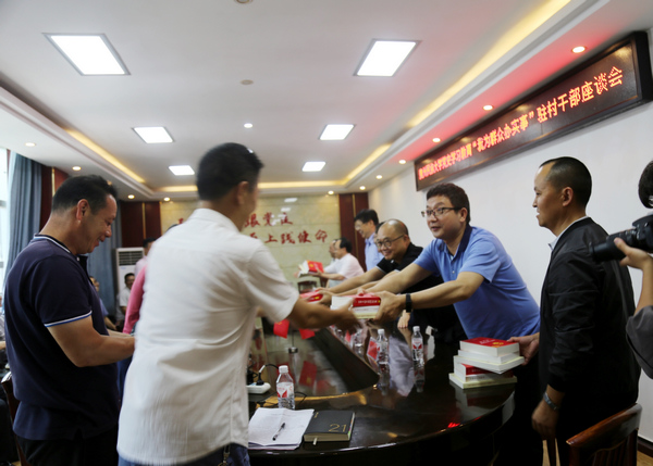 學校領導向駐村干部贈送黨史學習教育書籍。