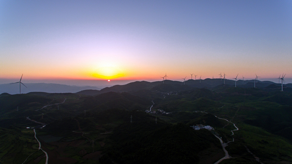 動工建設的華能息烽南山風電場,于當年12月28日全部建成投產,創造了貴州省山地風電場建設工期最短的記錄。馬輝 攝