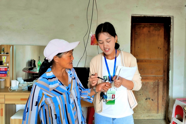 片區特崗民生監督員給群眾講解惠民利民政策。潘 磊攝