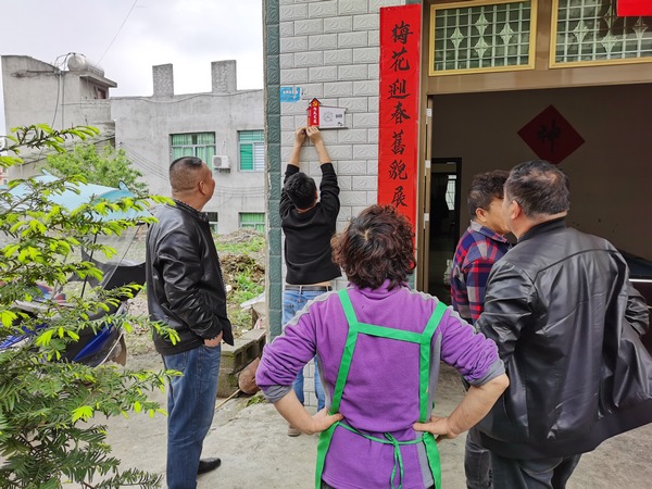 群眾在家門口張貼“為民黨建”數字門牌。吳波攝
