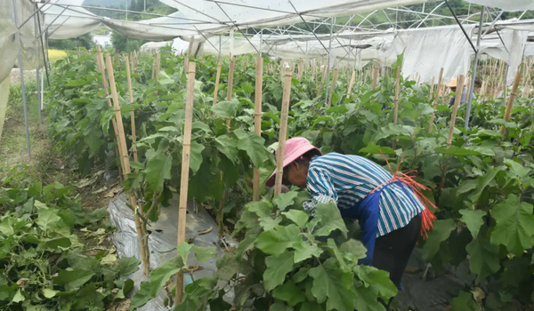 “大概二十多天我們剪枝的這批茄子又可以開始采收了!绷_甸勝祥生態農業開發科技有限公司負責人劉勝賓向筆者介紹道,在訪里村蔬菜種植基地里,工人們正拿著剪刀給余留的茄子修枝,以便后期追肥。
