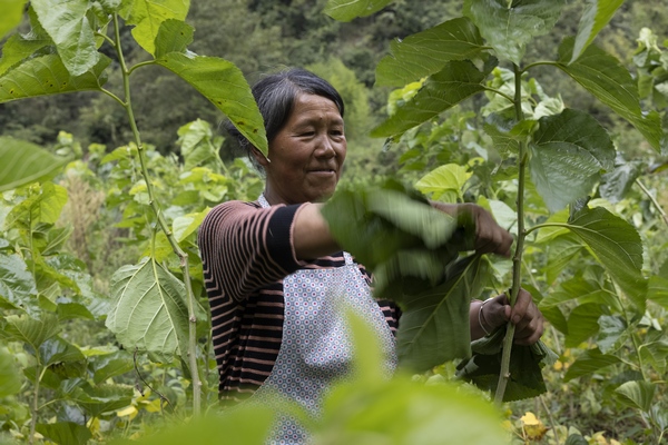 9月1日,貴州省納雍縣豬場鄉樂咪營村,村民正在采摘桑葉。