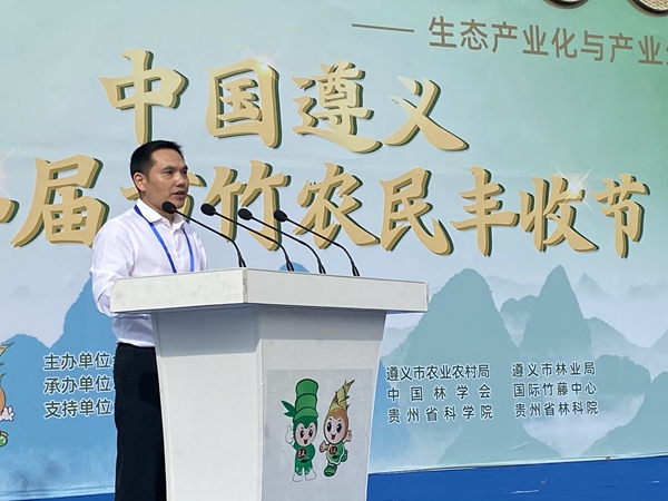 人民網桐梓9月23日電(唐杰) 9月23日,中國遵義第二屆方竹農民豐收節在桐梓縣開幕。開幕式 上,桐梓縣委副書記、代理縣長易賢對“大婁山方竹” 品牌作了推介,并發布了桐梓縣2021年豐收報告。