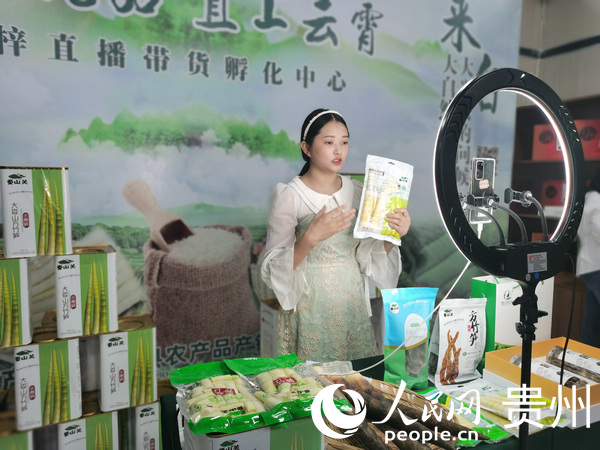 主播直播帶貨銷售方竹筍。人民網 孫遠桃攝