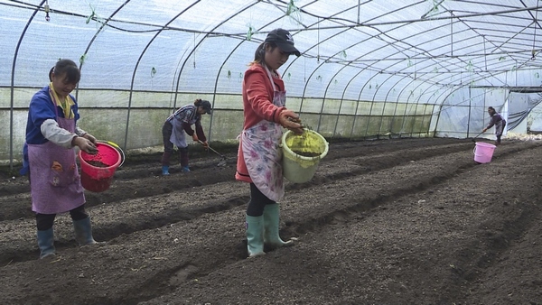 村民正在種羊肚菌。
