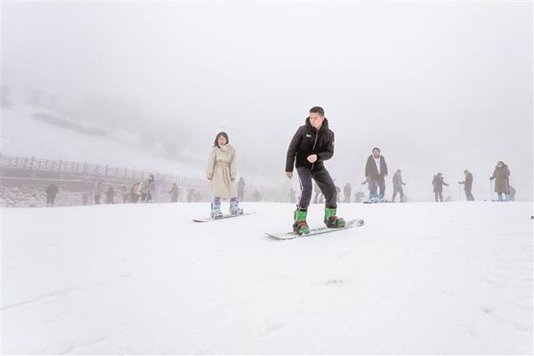 梅花山滑雪場游客縱享雪上激情。