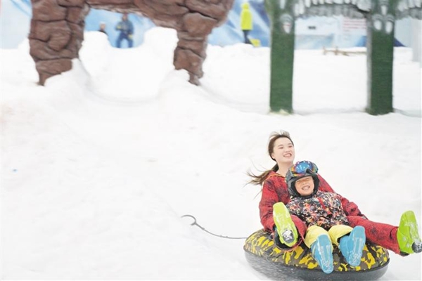 連日來,關嶺奇遇嶺景區室內滑雪場,游客手持雪杖、腳踩滑雪板,盡情享受滑雪帶來的樂趣。