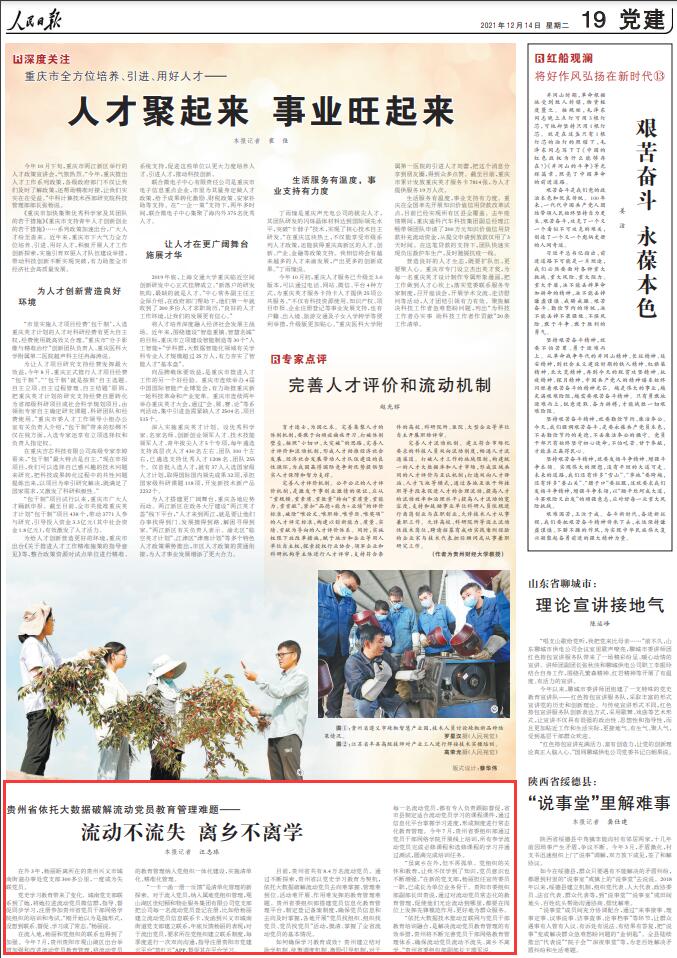 “雖離鄉在外,但不再孤單。黨組織的關懷和教育,讓我不僅學到了知識,黨員意識也不斷增強!痹谛碌狞h支部,楊麗擔任宣傳委員一職,已成長為單位業務骨干。貴陽市委組織部副部長田貴說,通過對流動黨員常態化的教育管理,促使他們無論流動到哪里,都要在崗位上發揮先鋒模范作用,更好地為群眾服務。