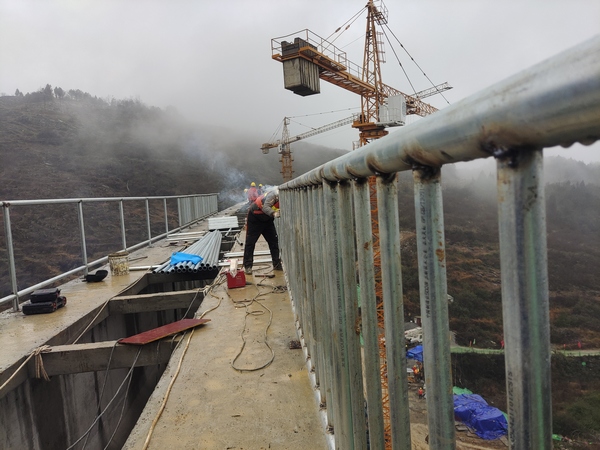 據中鐵十二局夾巖水利樞紐項目部技術科科長唐健哲介紹:金沙分干渠五營寨渡槽,是金沙縣內最高也是最長的一個排水渡槽,五營寨渡槽總長180米, 一共12跨,最高處排架高度28米,五營寨渡槽從2021年10月7日開始施工,經過3個月參建各方的配合,最后一跨順利完成合攏。