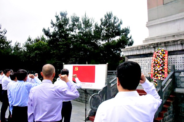 瞻仰革命烈士紀念碑并敬獻花籃。張雷攝