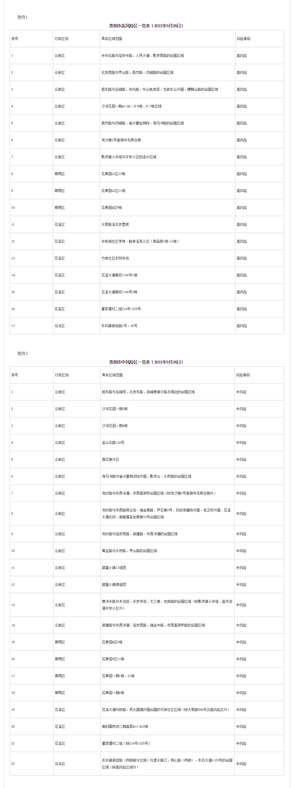 1.貴陽市高風險區一覽表(2022年9月26日)