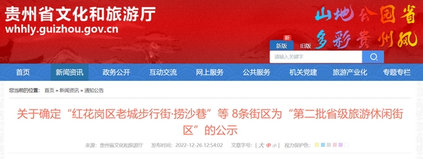 根據文化和旅游部辦公廳、國家發展改革委辦公廳關于旅游休閑街區認定的工作安排,為做好省級旅游休閑街區評定工作,豐富我省旅游業態、促進旅游消費,省文化和旅游廳、省發展改革委在全省開展了第二批省級旅游休閑街區評選工作。經各地申報、專家評審,省文化和旅游廳、省發展改革委審核,擬確定“紅花崗區老城步行街·撈沙巷”等8條街區為“第二批省級旅游休閑街區”(名單見附件),現予以公示,公示期為12月26日至12月30日。如有意見和建議,請在公示期間以電話、傳真或信函等形式向貴州省文化和旅游廳反映,并提供必要證據材料,以便核實查證。