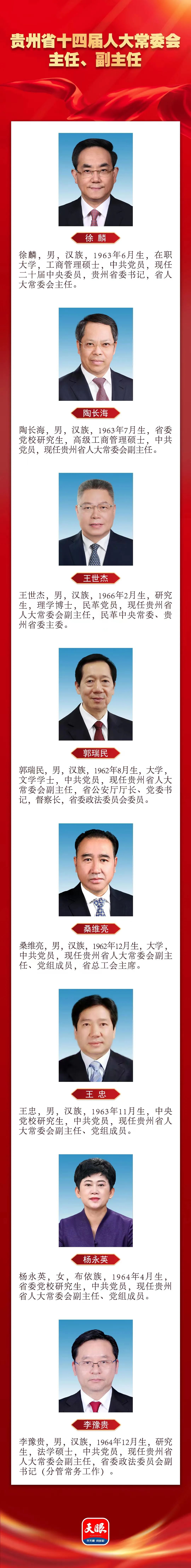 徐麟當選貴州省第十四屆人民代表大會常務委員會主任 7人當選副主任