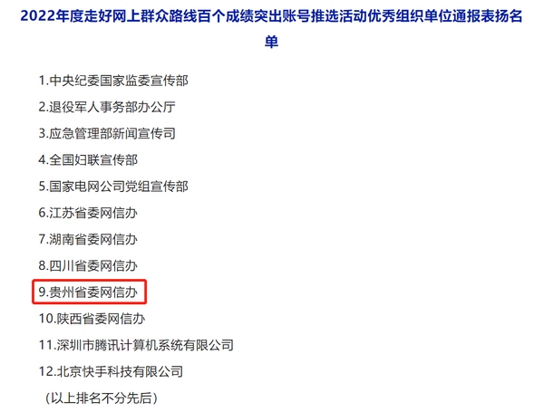 【網上群眾路線貴州實踐】貴州兩項上榜 中央網信辦通報表揚2022年度走好網上群眾路線百個成績突出賬號