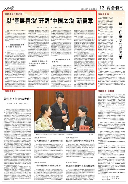 代表委員表示,要全面貫徹習近平新時代中國特色社會主義思想,抓好基層治理現代化這項基礎性工作,堅持和發展新時代“楓橋經驗”,以“基層善治”開辟“中國之治”新篇章,確保國家安全穩定、社會和諧有序、人民安居樂業。
