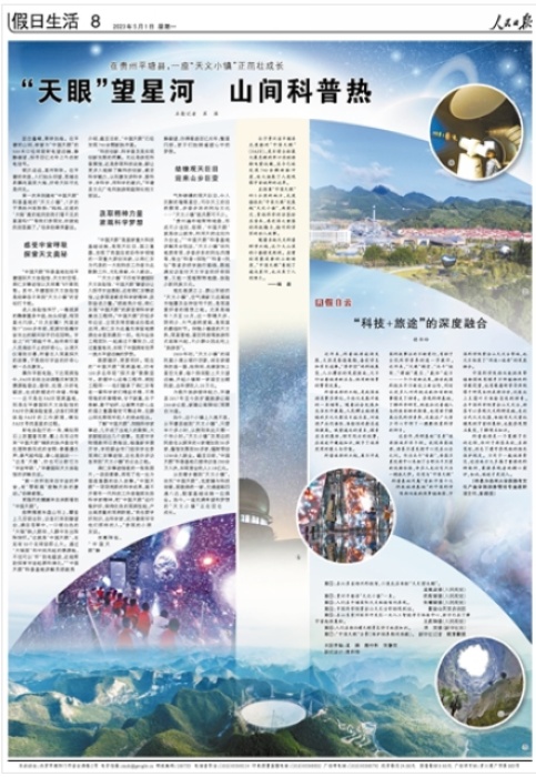 隨著當地天文科普研學興起,這個大山里的小鎮愈發熱鬧。在曾經閉塞寂靜的山坳坳里,“中國天眼”看到了遙遠星河,也點亮了人間煙火。