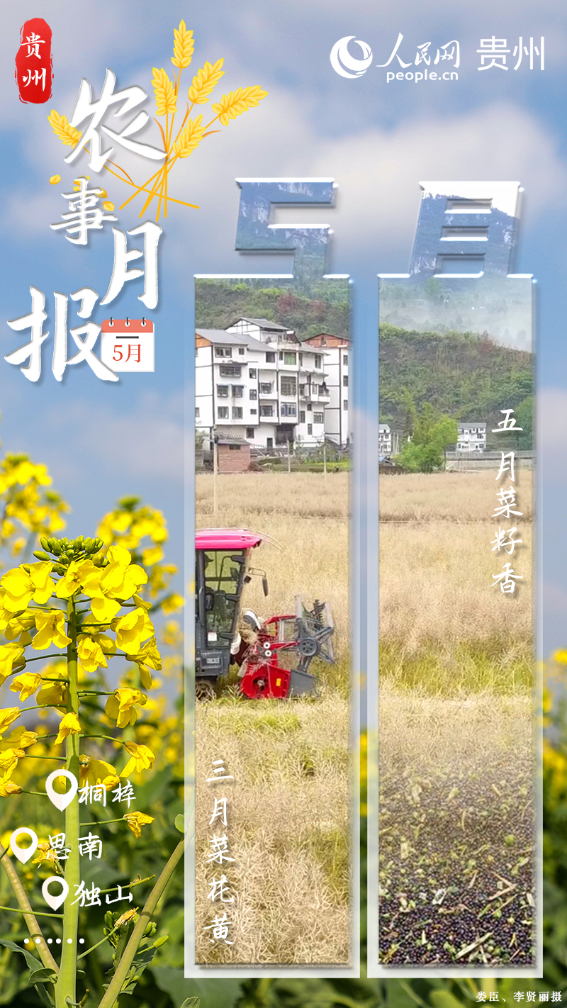 田家少閑月,五月人倍忙。進入五月,雨水漸多,是萬物生長的好時節。蛙鳴鳥叫、秧苗移栽,大地上熱鬧起來,農戶們忙碌起來,竹蓀也趕著趟地冒頭盛開……這期間,農戶并不只是搶收油菜籽、小麥,夏播作物也正是播種最忙的季節,春天播種的玉米、大豆等春播作物也正處在除草、施肥的季節,許多蔬菜瓜果也是在這個季節移栽。搶收、耙田、播種,貴州田間地頭一派忙碌景象。