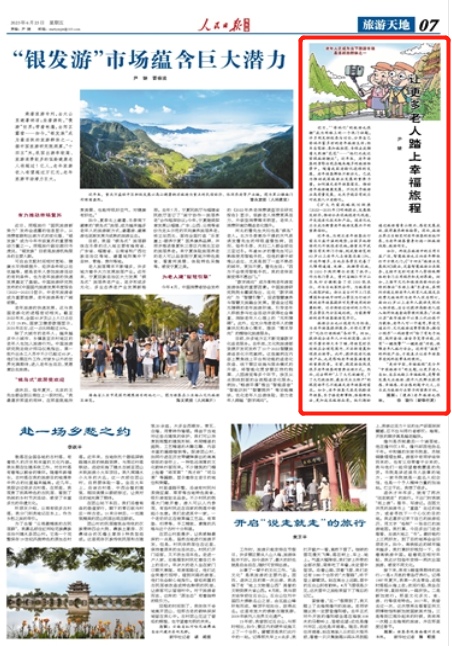 近日,“‘爸媽們’的旅游也很潮”成為網絡上的一個熱門話題。許多網友積極參與討論,分享自己爸媽豐富多彩的老年旅游生活:租車自駕游、參加旅拍團、專程去成都看大熊貓“花花”……“他們比我還緊跟旅游潮流”。近年來,老年游客的身影出現在越來越多的旅游場景中。隨著我國老齡化進程的發展,老年游客群體不斷壯大,已成為推動我國旅游業發展的重要力量。如何滿足老年游客需求、推動老年旅游健康發展,不僅關乎旅游業高質量發展,也關乎能否有效應對我國人口老齡化。