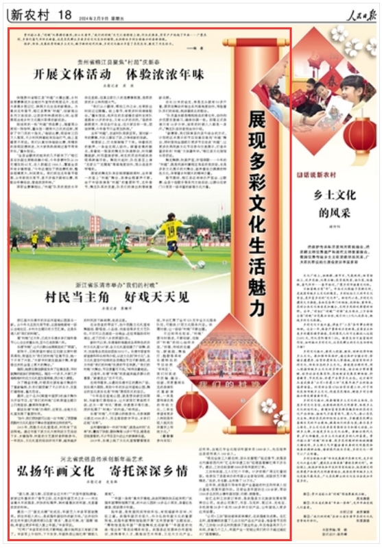 貴州榕江縣,“村超”比賽精彩激烈;浙江樂清市,“我們的村晚”文藝匯演持續上演;河北武強縣,家家戶戶貼起了年畫……廣袤農村,鄉親們喜氣洋洋慶新春,這是農民群眾多姿多彩文化生活的縮影,也折射出鄉村全面振興的嶄新面貌。