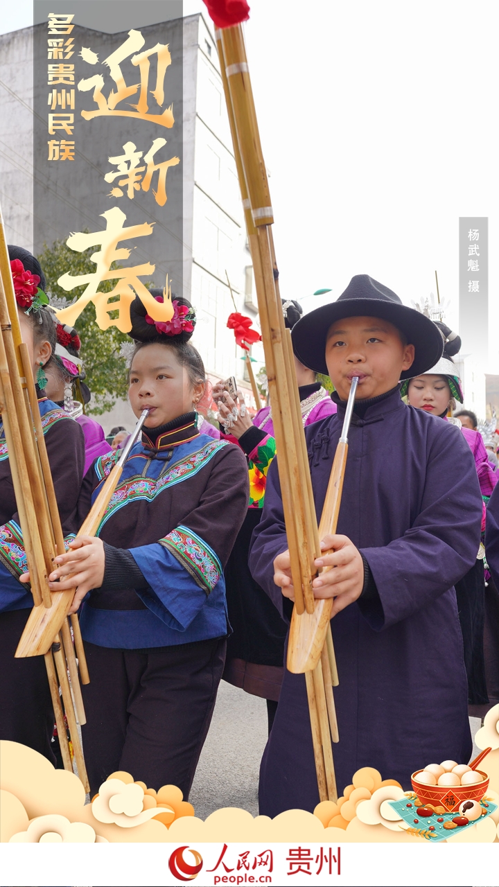 看演出、逛集市、沉浸式體驗最炫“民族風”……春節期間,貴州民眾在歡歌笑語中忙碌著,迎接著新的一年。在貴州少數民族地區有著別樣的新年風俗,從江縣丙妹鎮大塘村,苗族舅舅正在整理包頭帕準備給外甥女送“年粑”;丹寨縣興仁鎮興仁村村民身著節日盛裝,吹起蘆笙樂、跳起蘆笙舞和銅鼓舞;黎平縣黃崗侗寨由金童玉女扮演的小“官人”巡寨“鬧”新春,祈禱新的一年風調雨順。