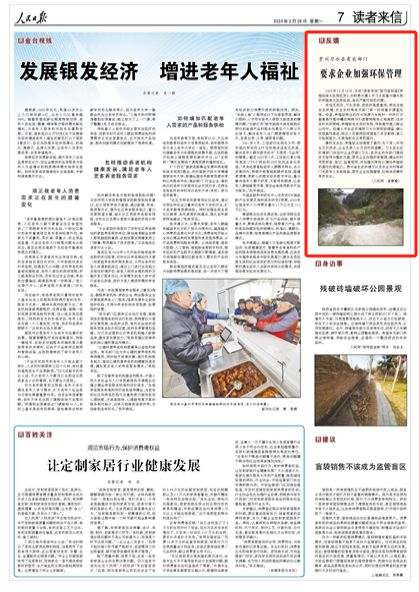2023年12月18日,本報“讀者來信”版刊登報道《養殖場廢水亂排亂放》,反映貴州遵義市習水縣隆興鎮永勝村養殖廢水亂排亂放,造成嚴重污染的問題。