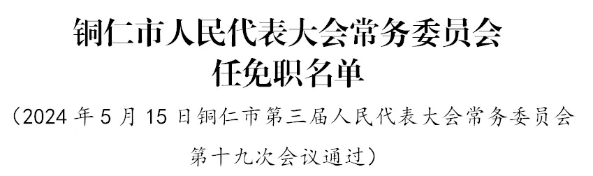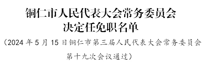 根據《中華人民共和國地方各級人民代表大會和地方各級人民政府組織法》和《銅仁市人民代表大會常務委員會人事任免辦法》的有關規定,銅仁市第三屆人民代表大會常務委員會第十九次會議決定: