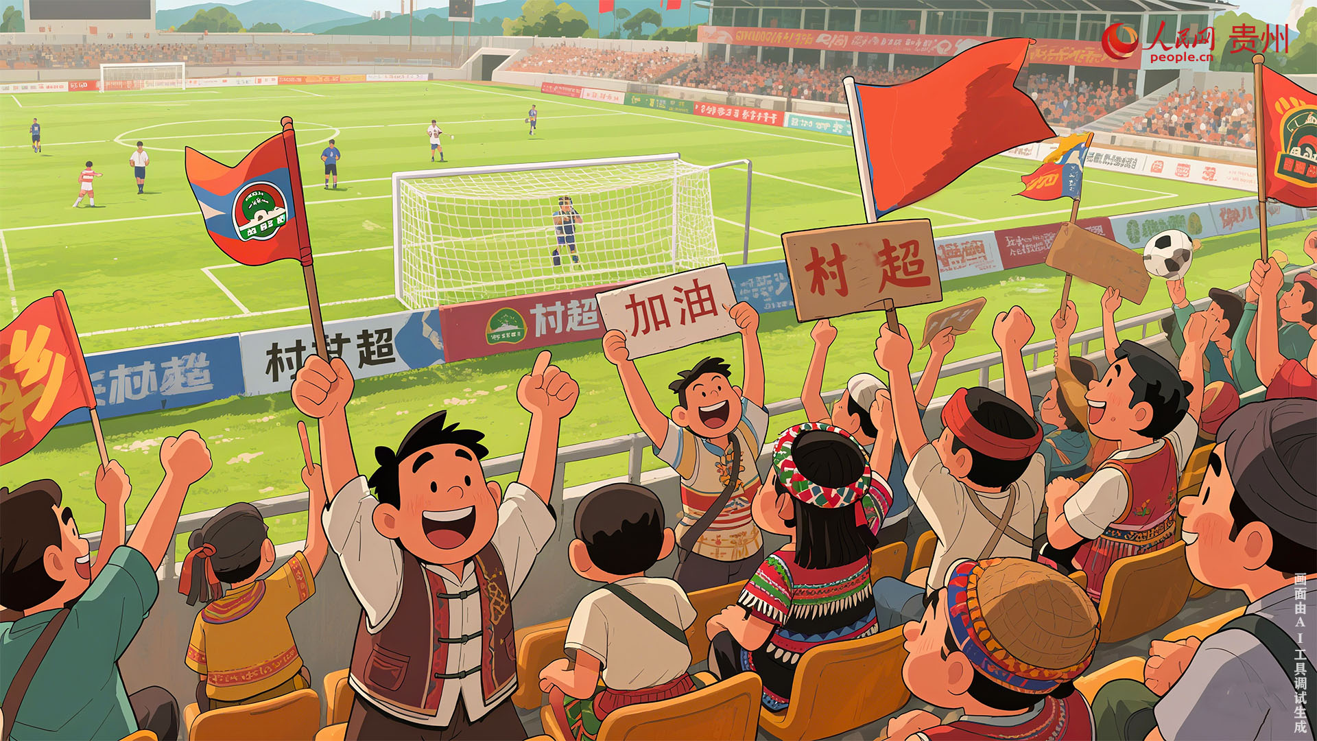 有人在村超激烈的賽場中歡呼