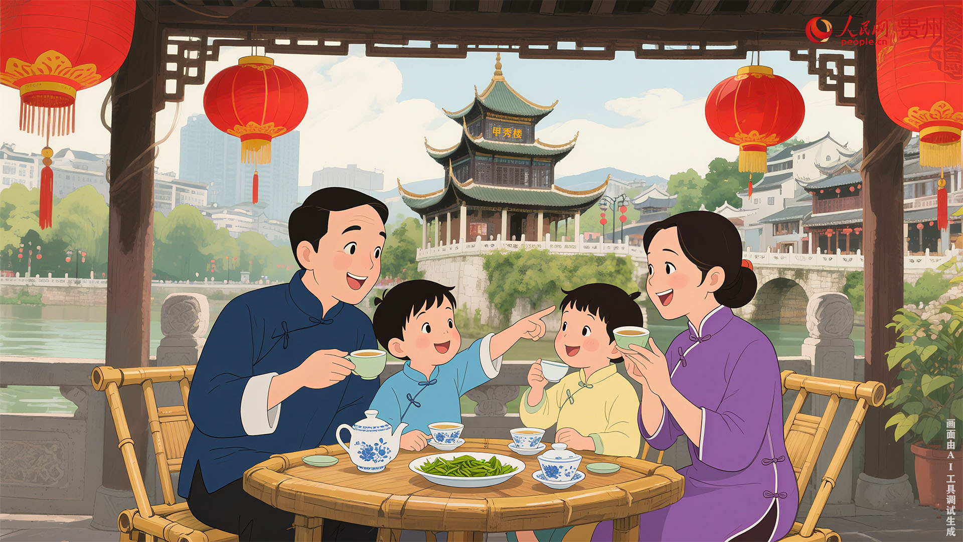 有人在貴陽甲秀樓品都勻毛尖夜話……