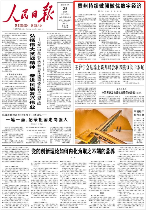 以習近平總書記重要指示精神為指引,貴州聚焦算力、數據、應用、產業,持續做強做優數字經濟,高質量建設數字經濟發展創新區,深化數智賦能引領支撐社會治理、生活服務、產業升級。