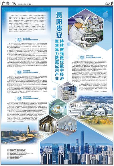 貴州是8個國家算力樞紐節點之一以及10個國家數據中心集群之一。近年來,貴陽貴安搶抓“人工智能+”、數據要素市場化機遇,深入實施“數字活市”戰略,堅持算力、數據、應用、產業協同聯動,全力推進數字經濟高質量發展。2024年,貴陽貴安數字經濟占地區生產總值(GDP)比重達53.3%,數字經濟成為高質量發展的強力引擎。