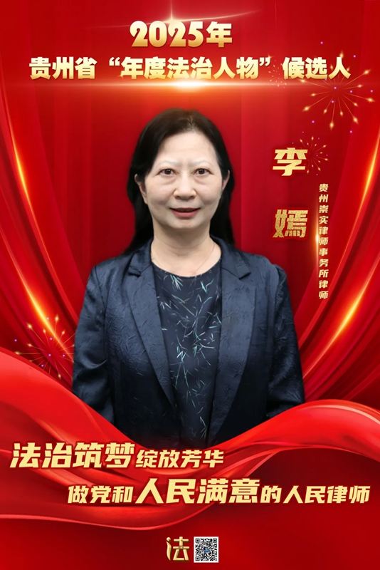 李嫣,女,現任貴州崇實律師事務所專職律師。她先后榮獲“貴州省優秀律師”“貴州省青年志愿者行動先進工作者”等多項稱號。在三十七年的執業生涯中,她不僅是法律實務的深耕者,更是法治溫度的傳遞者。身兼貴州省十三屆政協委員、貴州省律師協會監事會副監事長、貴州省律師行業婦女聯合會主席等多重身份,她始終以專業精神守護正義,以公益之心回饋社會,在黔貴大地上點亮了一盞不滅的法治明燈。